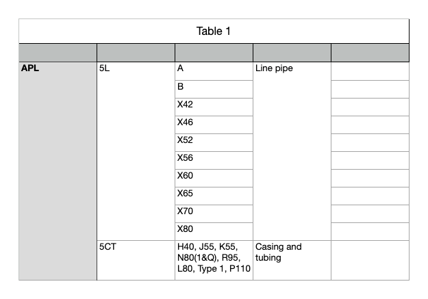 Standard – Grades: API 5L: Gr. A, B, X-42, X-46, X-52, X-60, X-65, X-70